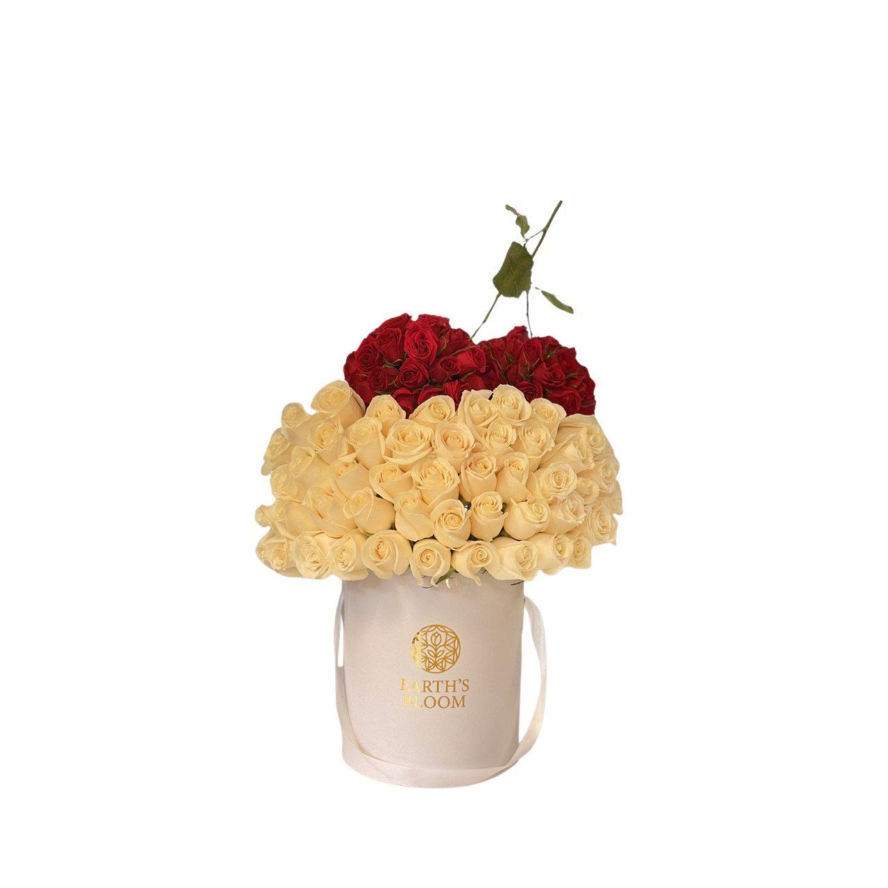 When love speaks through flowers… Soft cream roses embrace a bright red “cherry” on top — a symbol of passion, elegance, and the sweet perfection of life’s best moments.